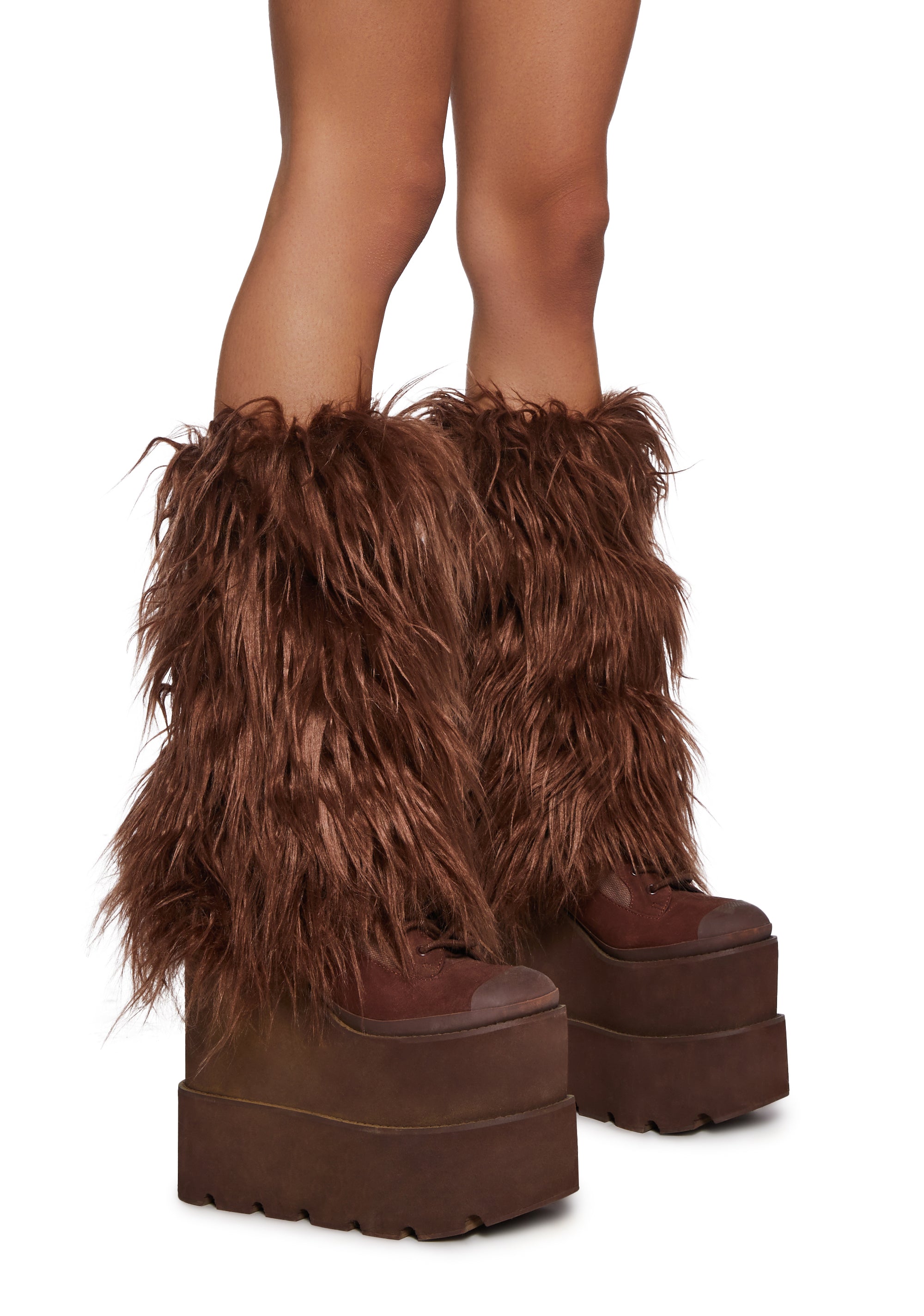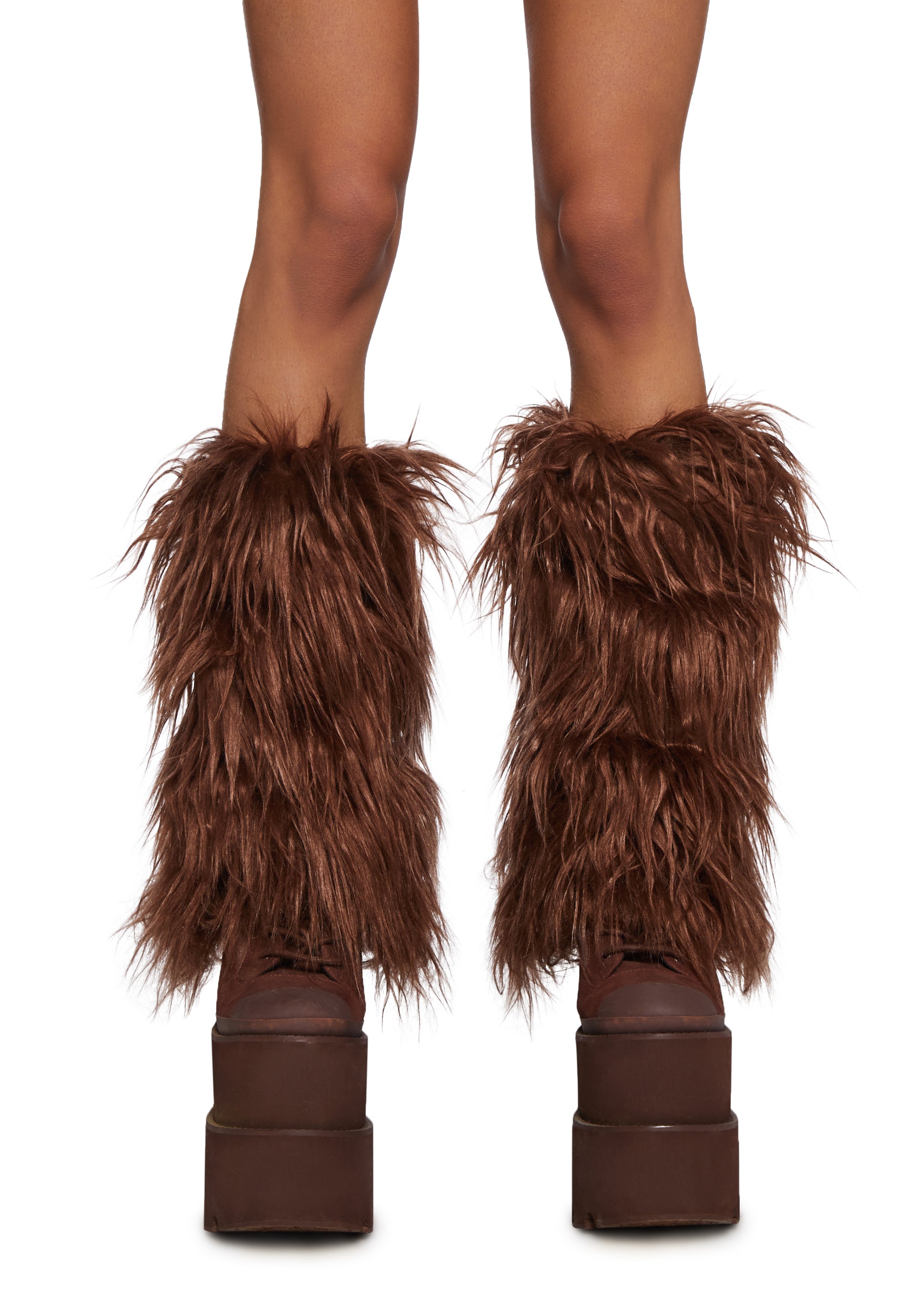 Up My Tempo Faux Fur Leg Warmers - Brown