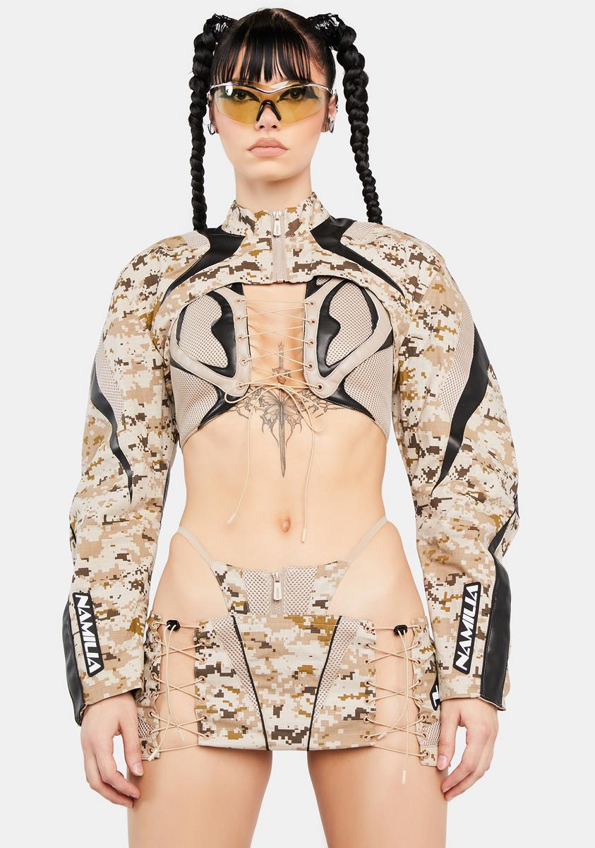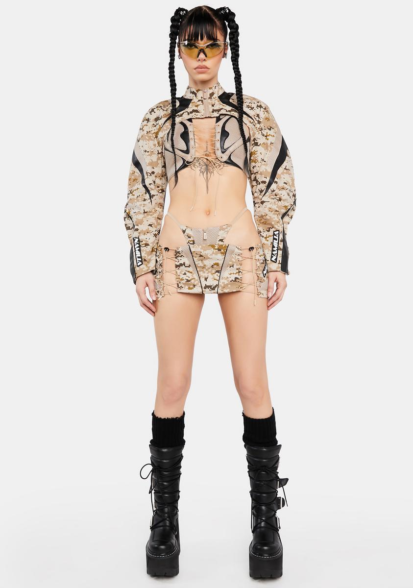 Desert Camo Micro Mini Skirt With Detachable Panty