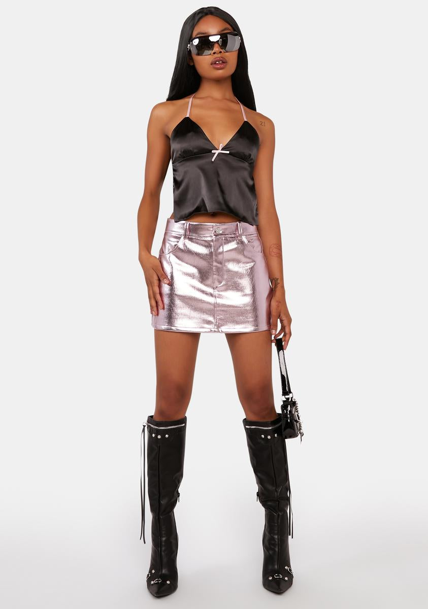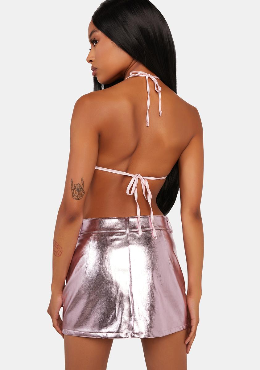 Pink Metallic Faux Leather Skirt